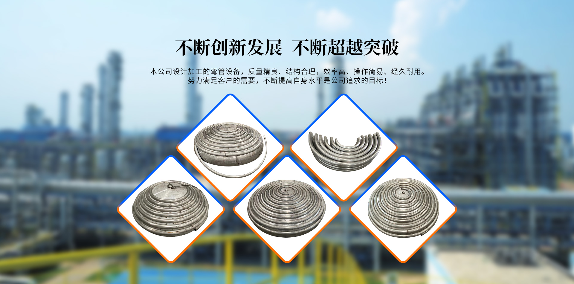 無錫百信達彎管制造有限公司位于經濟發達、風景秀麗的太湖之濱。本公司擁有完整、科學的質量管理體系,公司的誠信、實力和產品質量獲得業界的認可。公司專注生產、定制加工各種規格的盤管、半圓管、內盤管、不銹鋼盤管、封頭盤管、蚊香盤管、U型管、不銹鋼半圓管、碳鋼盤管等的企業。本公司設計加工的彎管設備,質量精良、結構合理,效率高、操作簡易、經久耐用。公司已經承接了各地多個大型場館工程項目的彎管加工,屢次得到了多家大客戶的好評。努力滿足客戶的需要,不斷提高自身水平是公司追求的目標。歡迎社會各界朋友蒞臨無錫百信達彎管制造有限公司參觀、指導和業務洽談!